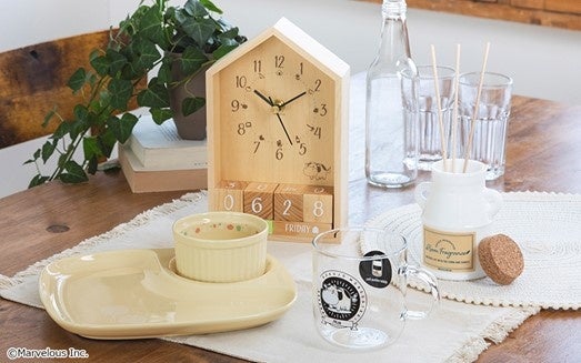 ブロックカレンダー付きの卓上「クロック」、ミルクタンク型の瓶に入った「ルームフレグランス」、マグ&ココット&プレートの「食器セット」をラインナップ。
